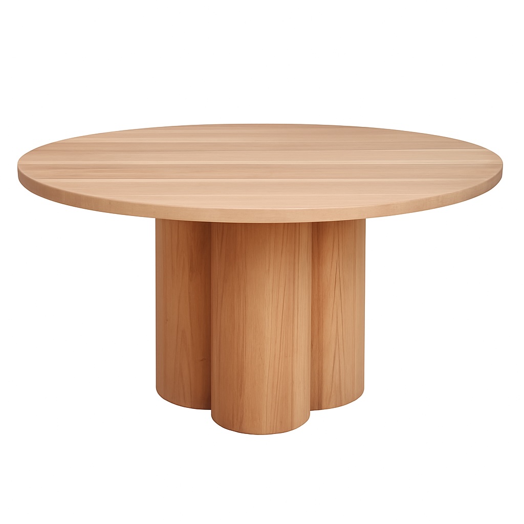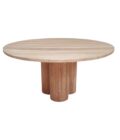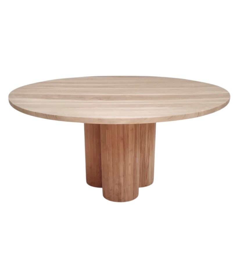 Crafted from solid teak, the Solis Teak Table is a statement piece that brings warmth, elegance, and durability to any space. Inspired by organic forms and timeless design, this table features a beautifully smooth, rounded tabletop resting on a sculptural base of interwoven cylindrical legs.